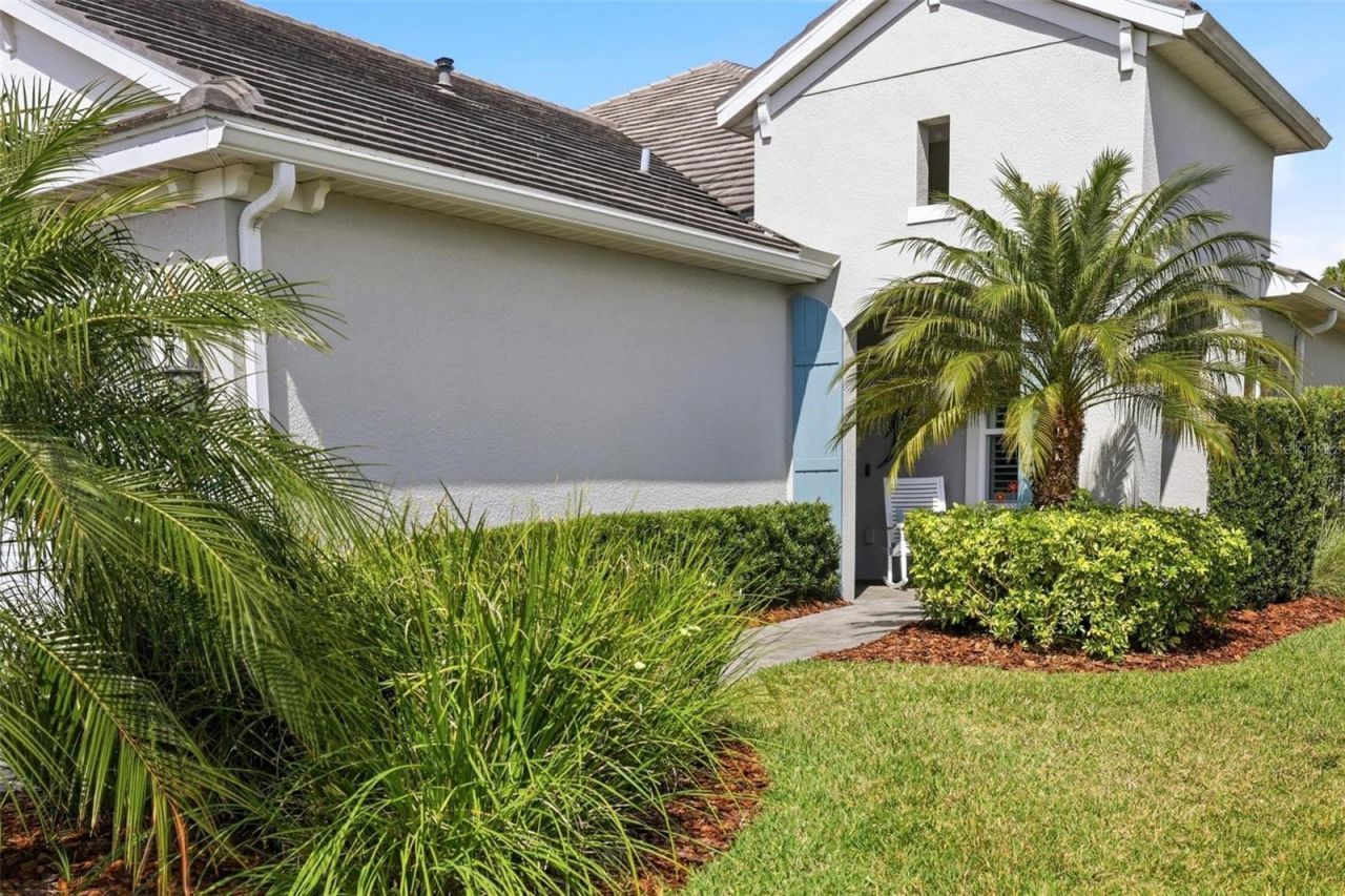 IMPACT WINDOWS AND DOORS, X FLOOD ZONE, CDD PAID OFF, WATER VIEW, PRESERVE VIEWS, BUILT IN 2020, LOW MAINTENANCE LIVING in the highly sought after Grand Palm community in Venice. This beautifully upgraded 2 bedroom, 2 bathroom home with a BONUS ROOM that can function as a den, office, or potential third bedroom offers 1,638 square feet of thoughtfully designed living space with NO NEIGHBORS IN FRONT OR BEHIND. The home sits on a premium homesite with a preserve across the street and a lake with preserved land behind it, creating a rare level of privacy while also being positioned far from River Road for a quiet setting. Inside, the main living areas feature wood look ceramic tile flooring, 8 FOOT INTERIOR DOORS, crown molding, plantation shutters, and a tray ceiling in the living room with built in Bose ceiling speakers. The kitchen features QUARTZ COUNTERTOPS, a glass tile waterfall backsplash, GE PROFILE appliances including an induction range and Advantium microwave convection oven, upgraded Timberlake cabinetry with dovetail construction, under cabinet lighting, a cabinet depth refrigerator enclosure, walk in pantry with glass door, and a large island with decorative panels and pendant lighting. Pocket sliding IMPACT GLASS doors open to the screened lanai featuring automated roll down privacy sunscreens, a ceiling fan, and a desirable northern exposure overlooking the water, creating seamless indoor outdoor living. The primary suite includes crown molding, private lanai access, plantation shutters, two closets with custom shelving including a walk in closet, and a spacious bathroom with dual granite vanities and upgraded shower package with handheld spray. Additional features include a bonus room with double glass French doors and a custom built in desk with marble top and under cabinet lighting, epoxy finished garage flooring with built in shelving and utility sink, smart home technology with thermostat, Z Wave hub, HD video doorbell, Guardian security system, radiant barrier roof sheathing for improved energy efficiency, sealed pavers in 2025, termite baiting system, and a landscaped palm island with decorative river rock behind the home. Grand Palm residents enjoy resort style amenities, walking trails, fitness center, pools, pickleball courts, and a vibrant social calendar just minutes from Wellen Park, downtown Venice, and the Gulf beaches.