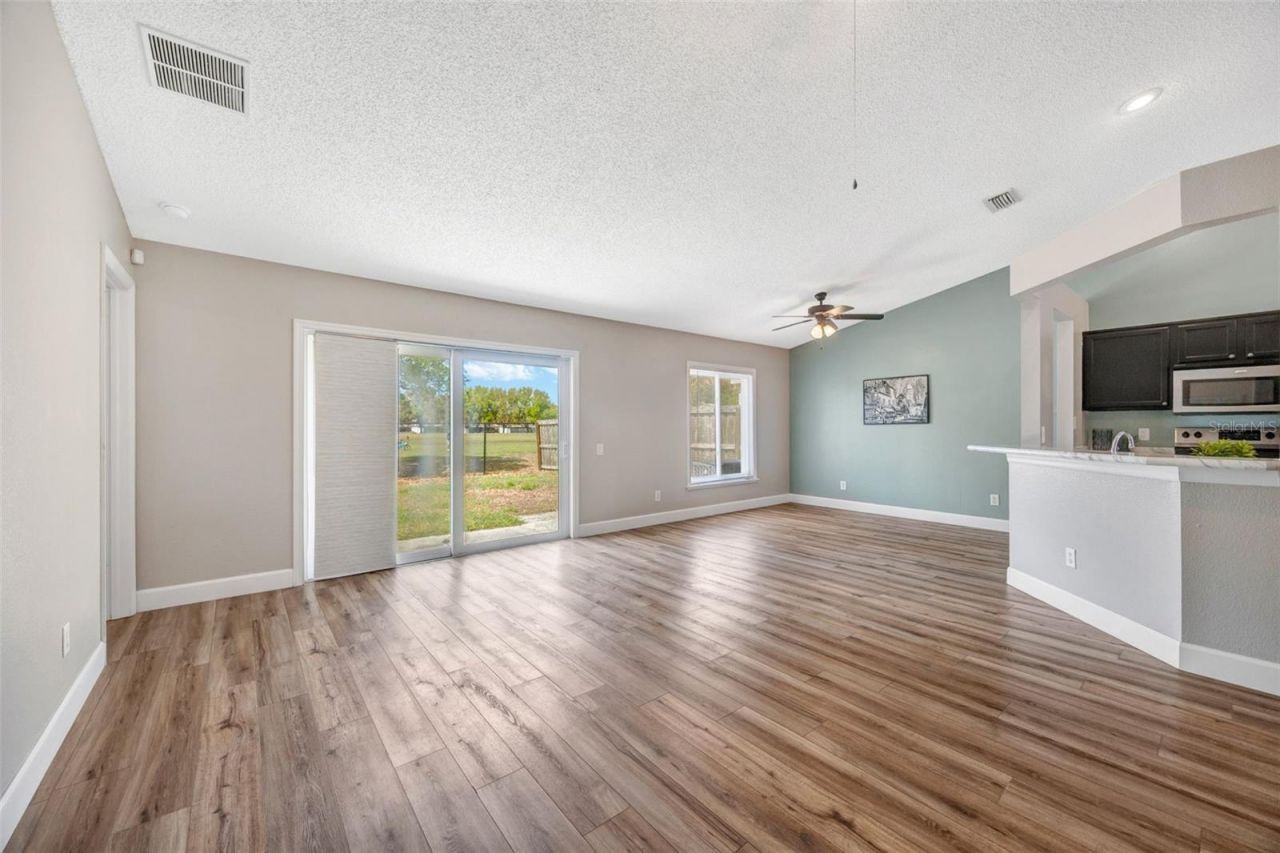 Welcome Home! Come see this charming and well-maintained 3 bedroom 2 bathroom home located in the desirable neighborhood of South Pointe! Warm and welcoming, this home features a split open floor plan with high ceilings throughout. **Upgraded impact rated windows and sliding door, newer vinyl plank flooring throughout, new vanity in primary bathroom, new kitchen counter & more** The open floor plan creates a steady flow between the kitchen, family room, and outdoor living space ~ perfect for entertaining! The kitchen overlooks the family room and includes stainless steel appliances, a cozy eat-in dinette space, and large closet pantry. The primary suite overlooks the backyard and includes ensuite bath and a huge walk-in closet. En suite bathroom features new dual sink vanity and glass walk-in shower with stylish upgraded tile. The secondary bedrooms are nicely sized with ample closet space. Host a family gathering or unwind after a stressful day in your private and tranquil backyard that overlooks the South Pointe playground and open park spaces - NO BACKYARD NEIGHBORS. The fenced in backyard has plenty of room for a pool, playset, or future lanai additions. Washer and Dryer included. **HVAC and Roof replaced in 2018** Enjoy the low HOA and recreational amenities of South Pointe including the community pool, park, playground, sidewalks, & more. Conveniently located to Tampa, MacDill AFB, I75, I4 and the Selmon Expressway. Schedule your private showing today!