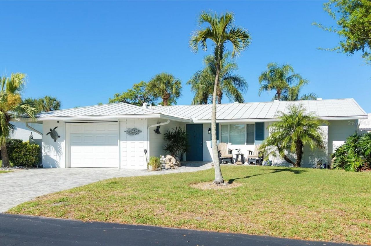 Boat Ready Living in Englewood Isles! This beautifully remodeled 2 bedroom, 2 bathroom, oversized 1 car garage split floorplan home is being sold furnished and features a 2023 metal roof with third nail, impact windows, hurricane shutters for all windows, and a generator. The property also includes exclusive use of a 42 ft seawall that includes dock with water and electric, and a 13,000 lb lift, so your boat is always ready. Cruise through Forked Creek to Lemon Bay and out to the Gulf right from your backyard, making it easy to enjoy days on the water whenever you choose. A paver driveway and walkway welcome you inside, where LVP flooring and coastal style create a warm and inviting feel. The great room, dining area, and kitchen are all open, while the fully enclosed Florida room adds significant additional living space and makes the home feel incredibly spacious. The kitchen offers an abundance of white shaker style wood cabinetry with soft close hinges, granite countertops, a glass tile backsplash, and a pass-through bar to the Florida room, creating the perfect spot for casual dining or entertaining. Double barn style doors lead to the private ensuite primary bedroom, filled with natural light from the bay window and featuring a walk-in closet and a well appointed bathroom with a large fully tiled step-in shower, tile extending halfway up the walls, and an oversized vanity. The guest bedroom and bathroom are thoughtfully positioned on the opposite side of the home for privacy. The guest bedroom includes a reach-in closet, while the guest bathroom features a fully tiled tub and shower combination and a spacious vanity. A mini split air conditioning system in the Florida room keeps the space comfortable year-round, and for outdoor enjoyment, a paver and block patio provides a great setting for grilling your fresh catch, surrounded by beautiful landscaping that adds both privacy and charm. The garage is large and has an epoxy coated floor and space for the laundry area. Take a short walk across the expansive community green space to the dock and see for yourself just how easy it is to get out on the water for a full day of boating and fishing. Englewood Isles also offers a community pool and clubhouse, and the condo association covers irrigation, lawn maintenance, tree and shrub trimming, and pool care, allowing for easy, low maintenance living. Located at 35 Oakwood Drive N in North Englewood, this home offers a relaxed, maintenance-free lifestyle right between Englewood and Venice, making it easy to enjoy local events, waterfront dining, shopping, and entertainment. Spend your days exploring nearby beaches, then come home to a community that takes care of the details for you.