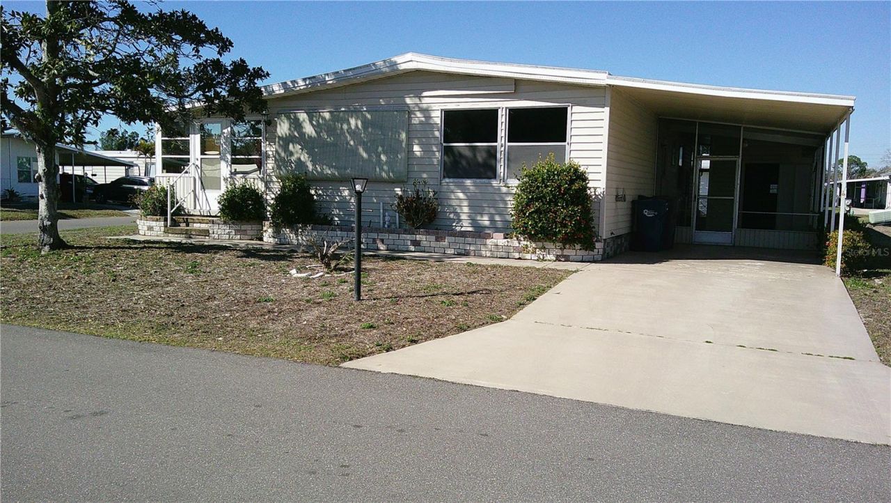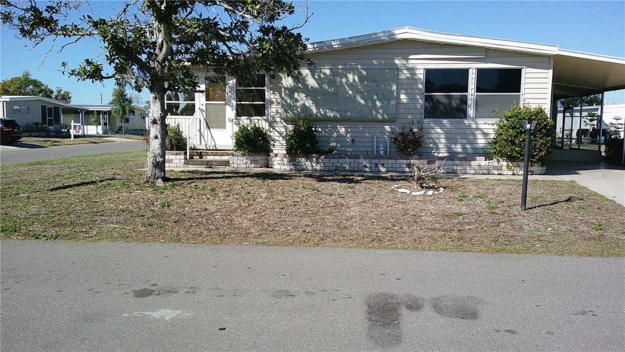 Handyman special. With alot of elbow grease you can make this a beautiful Florida home. It had a new roof installed in 2025. All the flooring has been pulled down to the subfloor. There a numerous holes in the floor. Welcome to your own little peace of paradise. This spacious 1344 sq feet home has a large living room and a dining room that gives you a lot of space to entertain. Shadow Brook is one of the best kept secrets in Manatee county. You own the land which means NO LOT RENT. The low quarterly fee includes Water, Sewer, Cable and Internet. It is a any age pet friendly park. Brand Shadow Brook features a beautiful heated pool and shuffle board courts. The clubhouse has a large library and a pool table. You can rent out the clubhouse for special events. Shadow Brook is located near the Sunshine Skyway Bridge and I 75. The beautiful gulf beaches of Anna Maria Island are just a short drive away. All room sizes are approximate. Please use As Is contract.